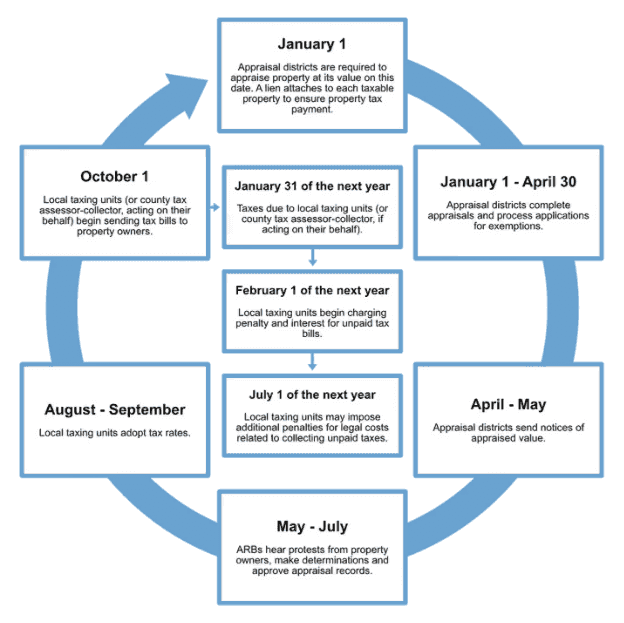 - You will receive a “Notice of Appraised Value” in the spring from your county appraisal district.